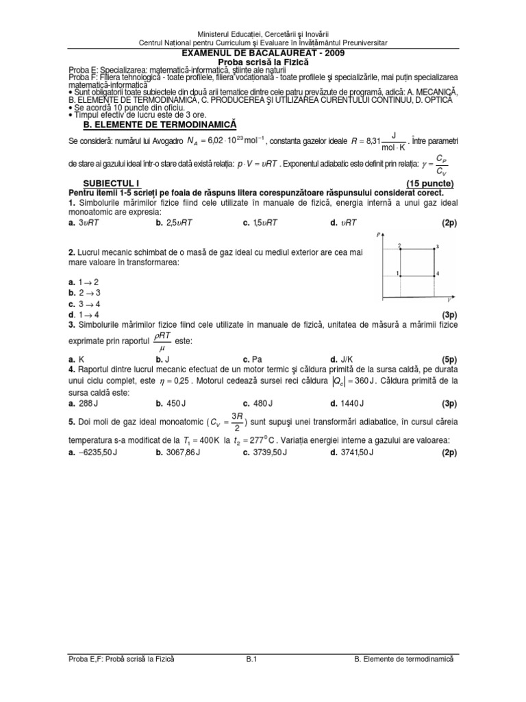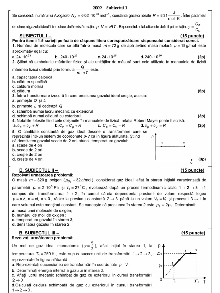 Variante Bac Fizica Termodinamica 2009 Printat Pdf Pdfcoffee Com