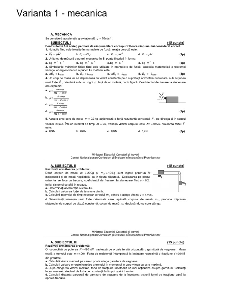 Varianta 11 Varianta 12 Varianta 13 Varianta 14 Varianta 15. Download Full PDF Package. Variante Bac Fizica Mecanica.