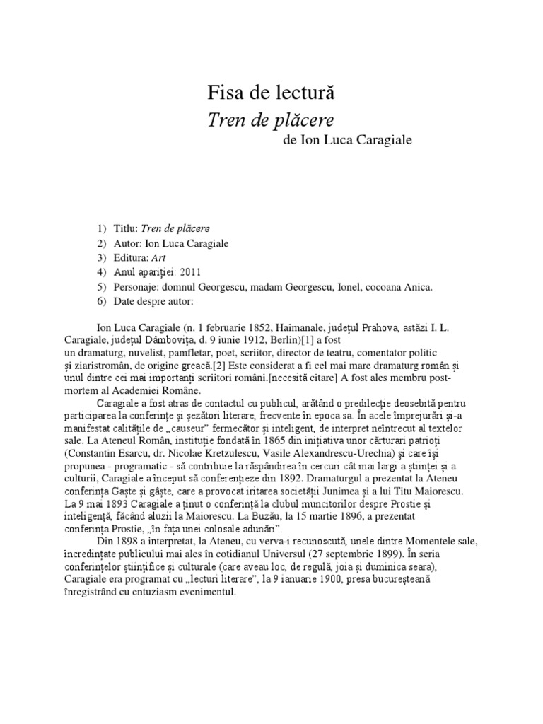 Ad Upload Convert Edit Sign PDF Documents. Caragiale este și autorul unui volum de Momente și schițe. Ion Luca Caragiale Tren de Plăcere.