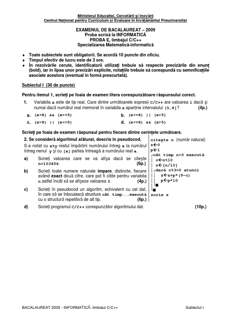 Variante Bac Informatica 2009 Pdf