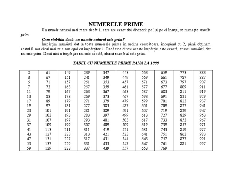 Tabelul Numerelor Prime Pina La 6070 Cartdidact Md