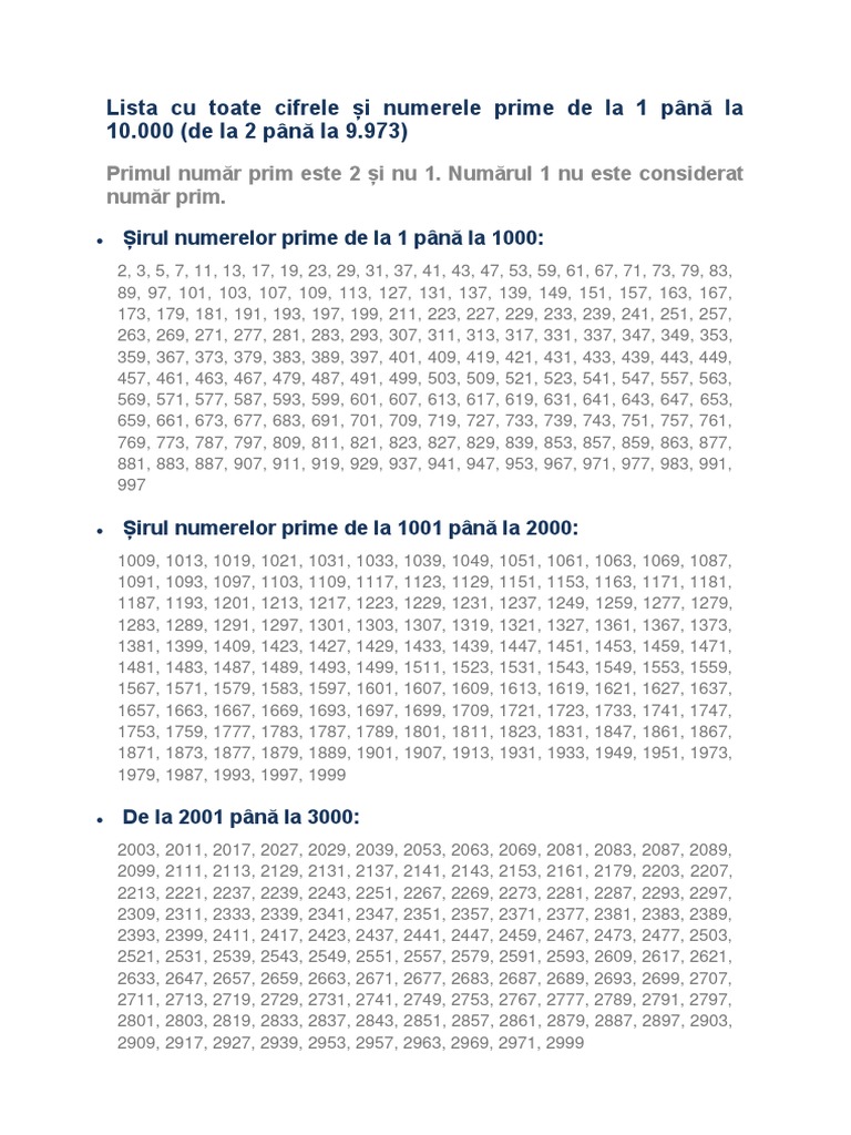 Lista Cu Toate Cifrele și Numerele Prime Pdf